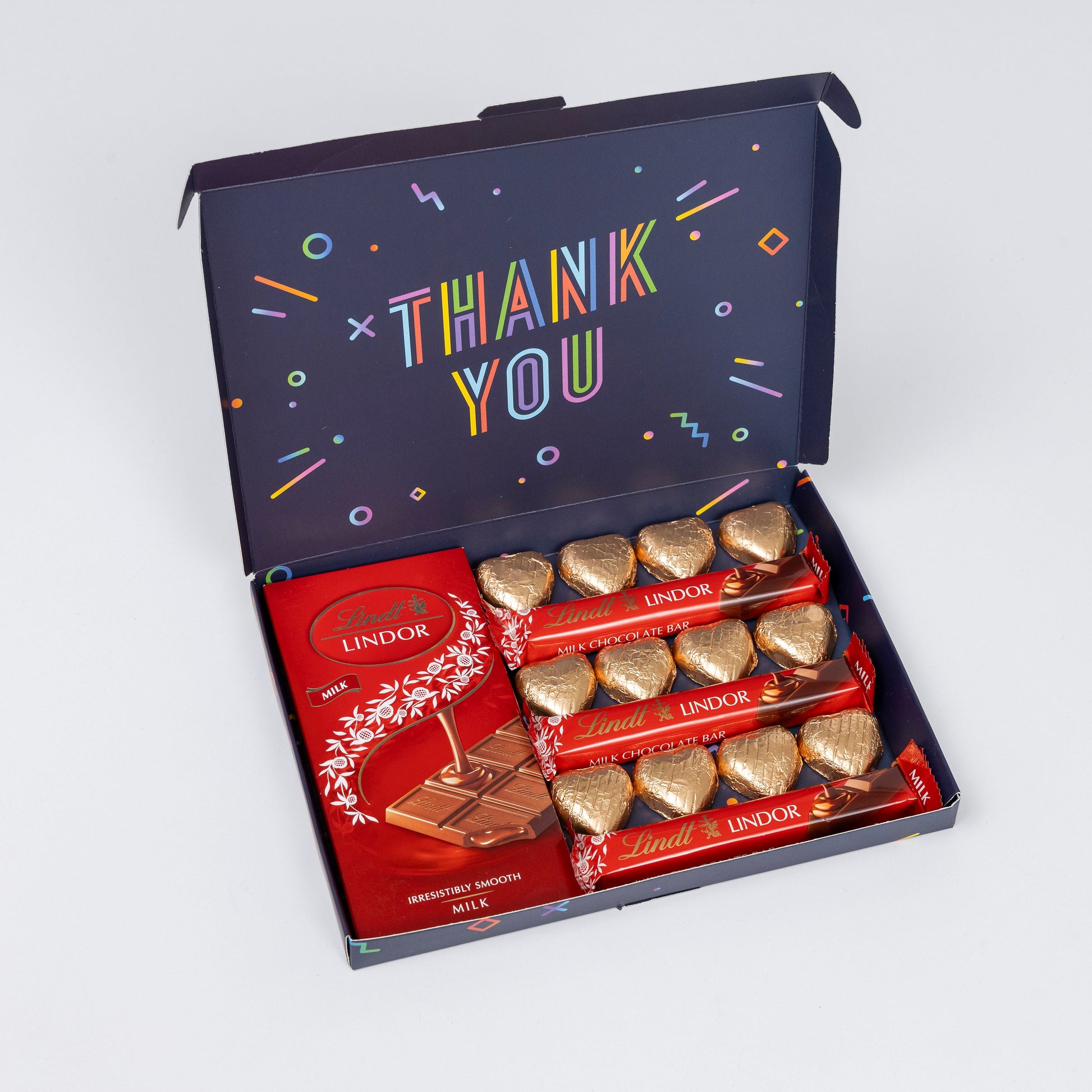 Lindt Lindor Milk Chocolate Bars & Hearts Gift Box Hamper Thank